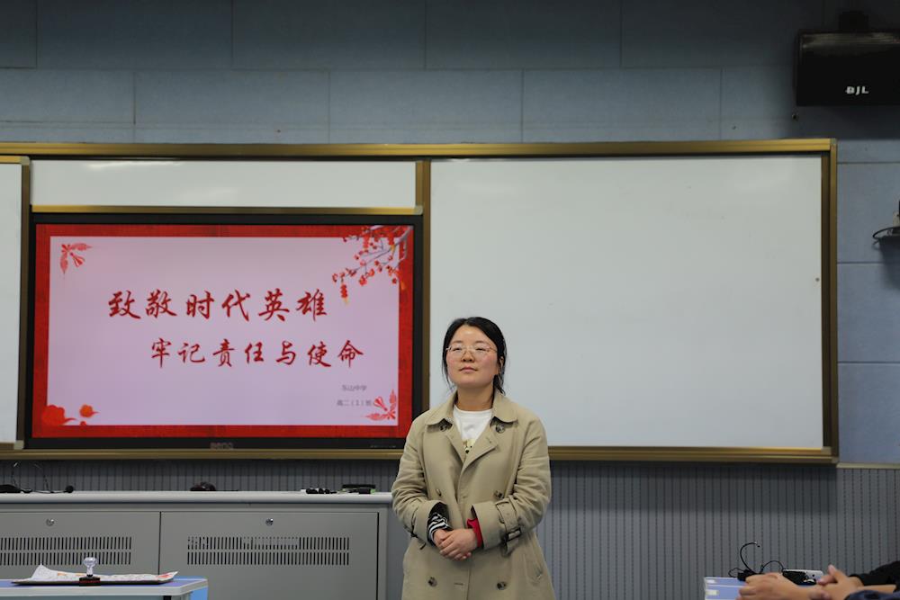 4月9日,德育处组织开设了“致敬时代英雄,牢记责任与使命”的主题班会公开课,高二(1)班周志慧老师精心准备,精彩呈现。金曦东校长、校长助理岳钦、教务处盛国平主任、教技室曹红英主任、年级部领导、德育处全体成员、全体班主任参与听课。