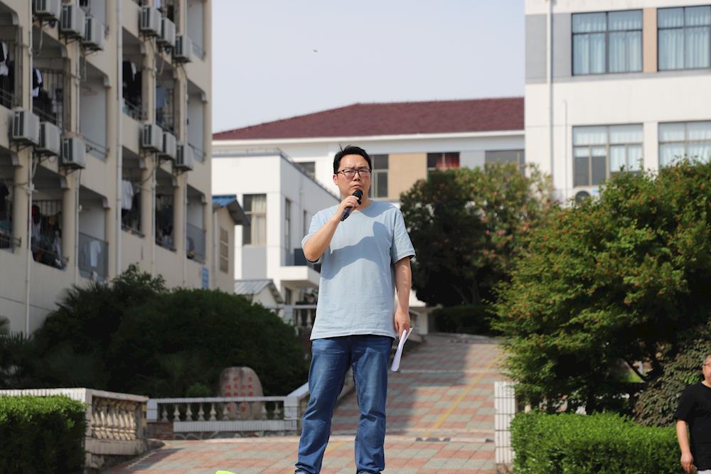 15:55,随着地震警报声的响起,学生们在班主任的指导下就地避险,抱头、下蹲,躲到课桌侧面,用单手或书本保护头部,另一只手抓牢桌腿。疏散警报声响起时,全体师生按照指定的紧急疏散路线有序地撤离教室,迅速到操场指定位置集合,班主任迅速清点人数并汇报。整个过程快速、安全、有序。演练结束后,德育副校长钱毅俊对演练活动进行了总结。